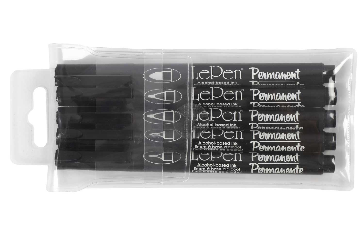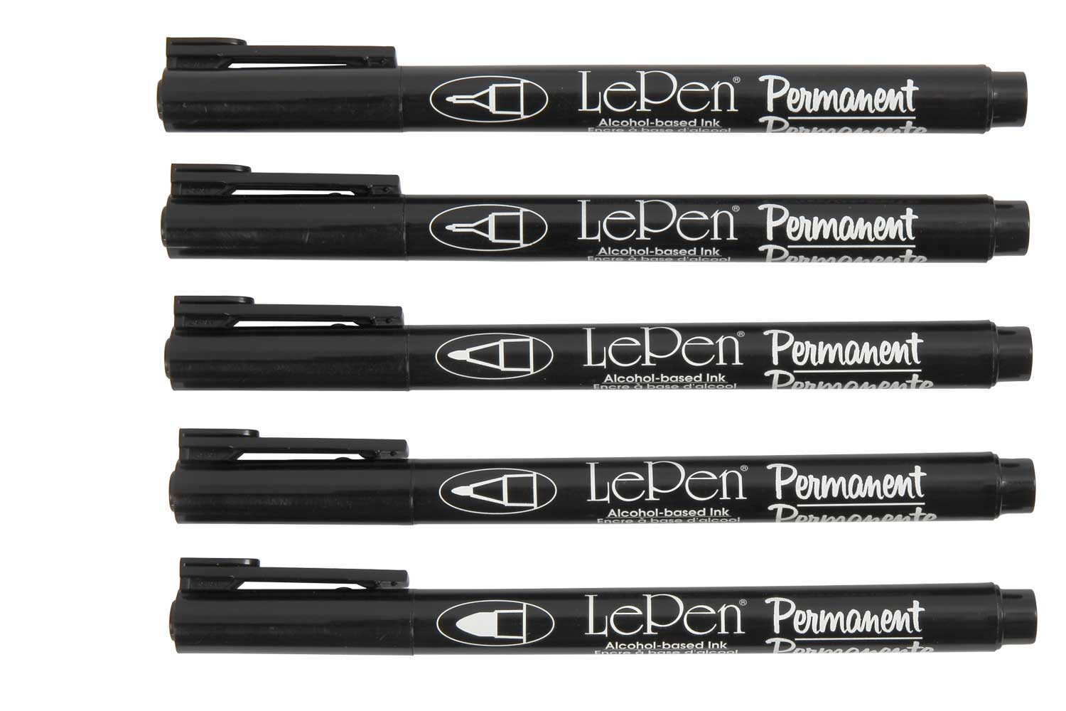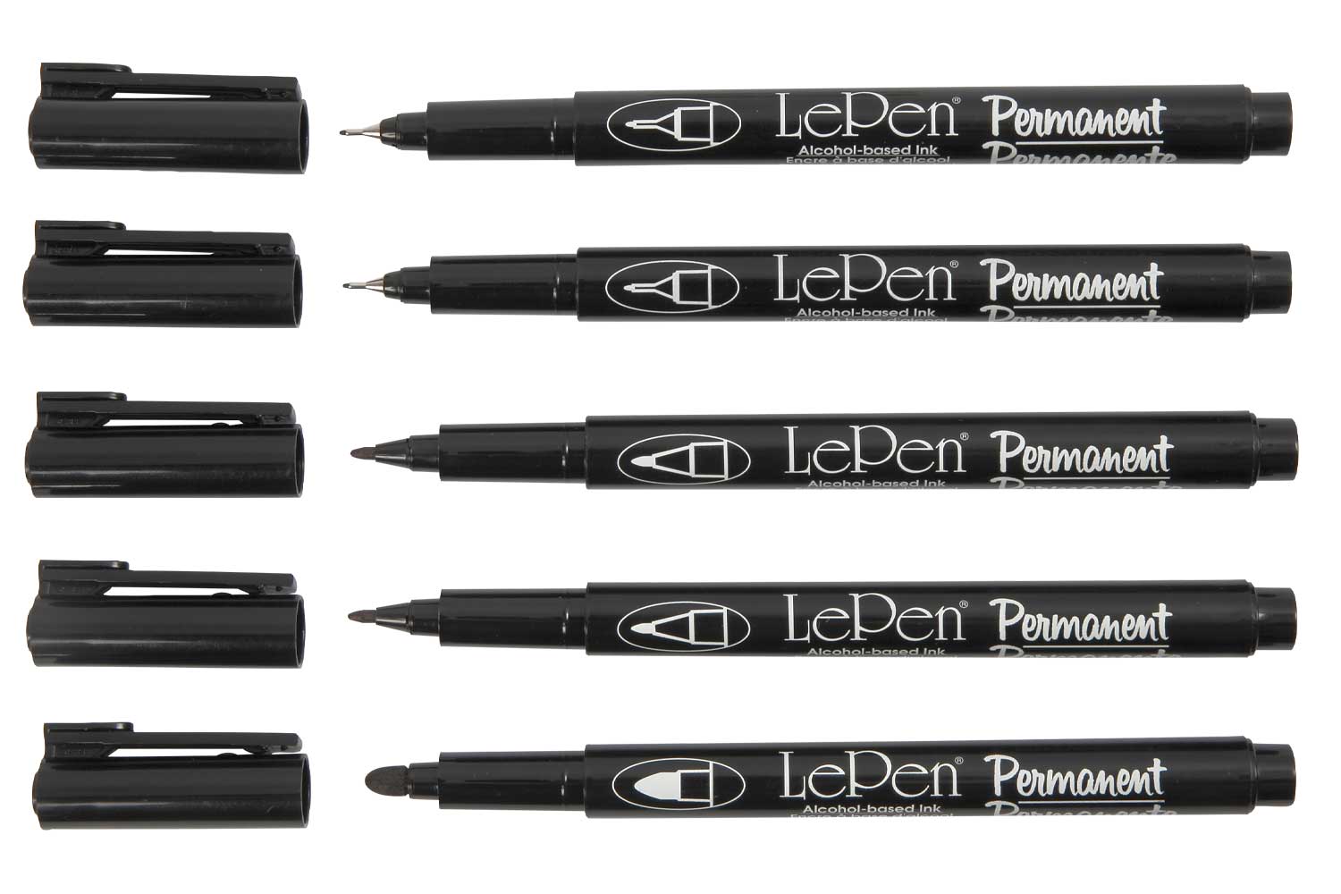 Set composed of 5 markers, including 3 tips of assorted sizes: 1 broad tip, 2 medium tips, and 2 extra-fine tips.