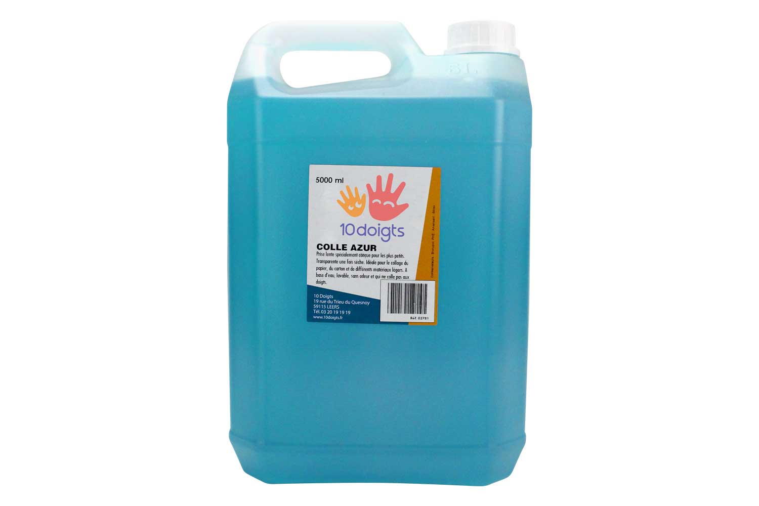10 Doigts blue-tinted glue for sticking paper. As it dries, the blue color disappears, allowing children to easily see where to apply the glue on the paper.
