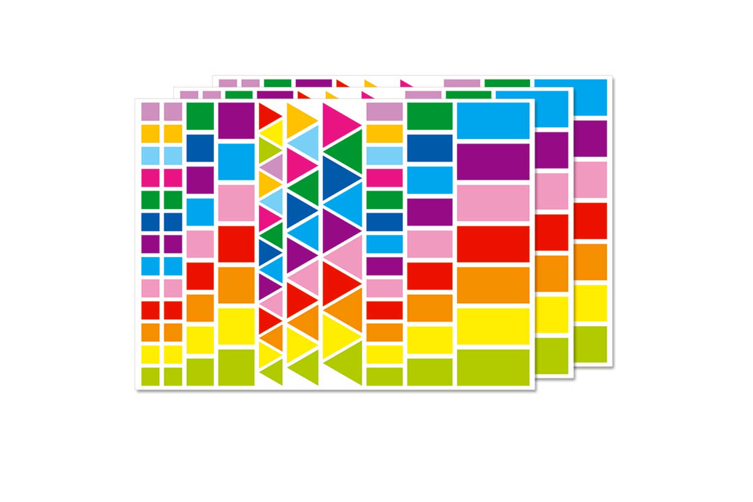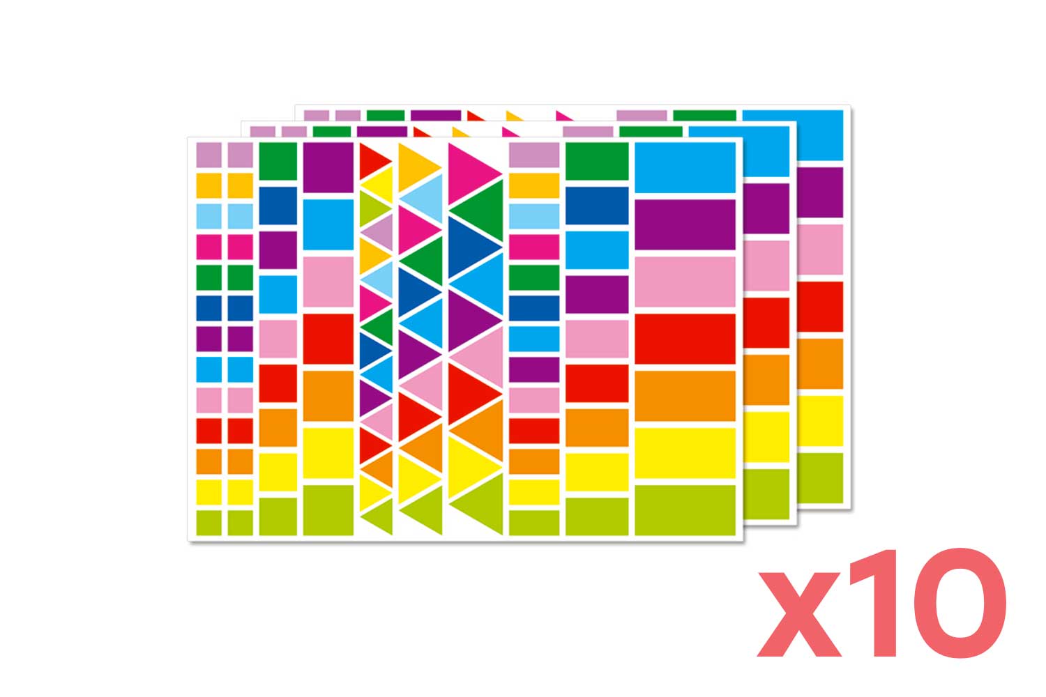 10 DOIGTS stickers in square, rectangle, and triangle geometric shapes! Sheets of 109 stickers, available in 13 colors.