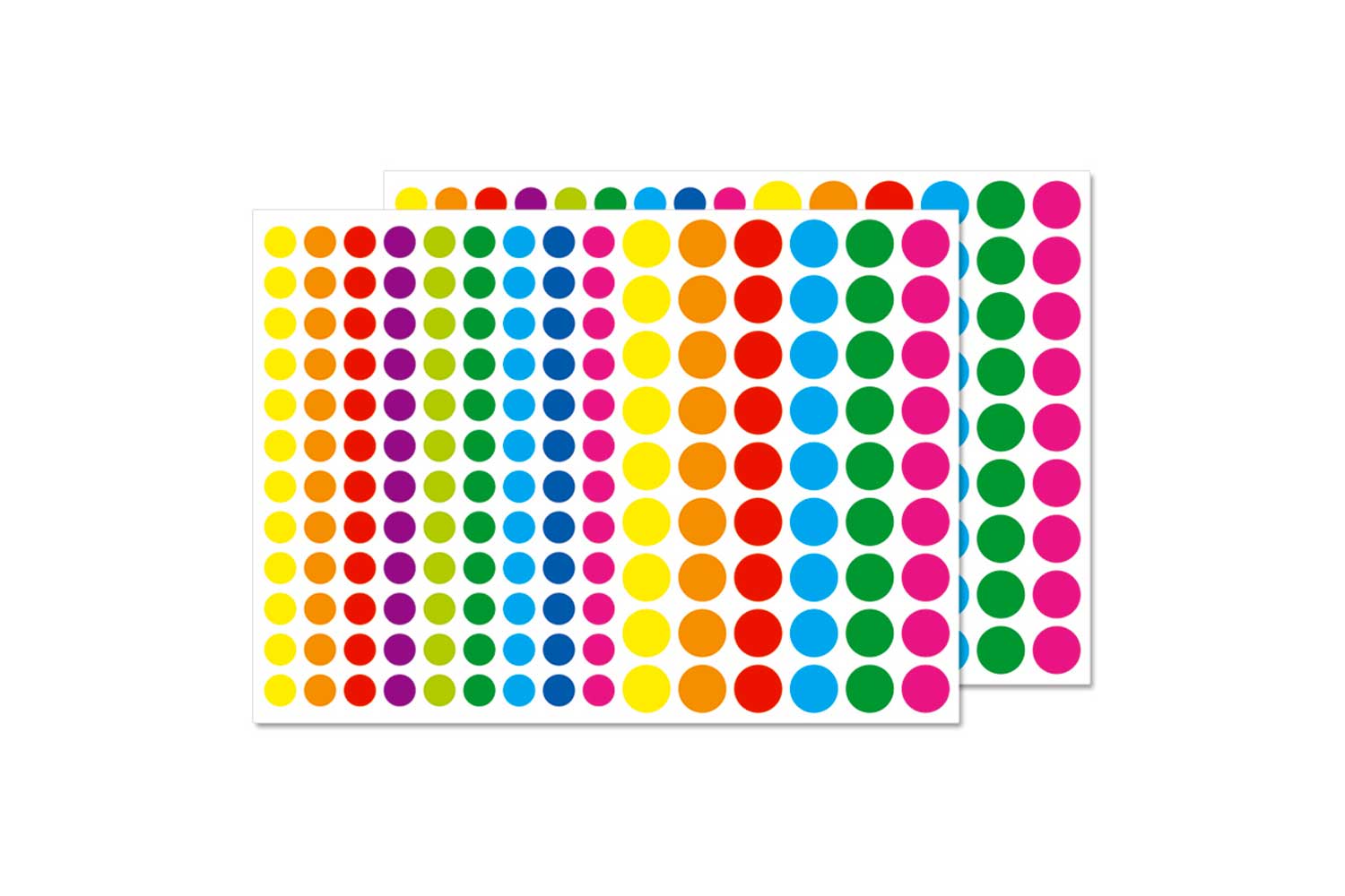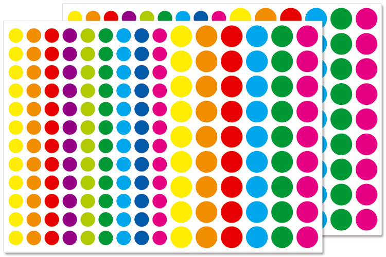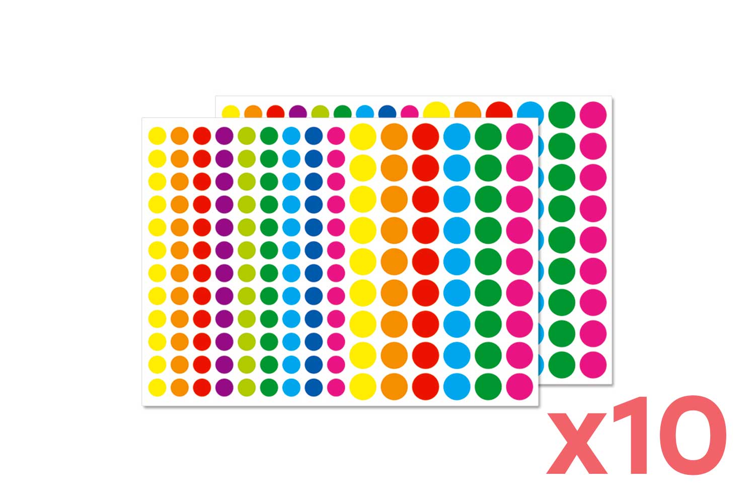 10 DOIGTS round-shaped stickers. Sheets of 162 stickers, available in 9 bright colors.