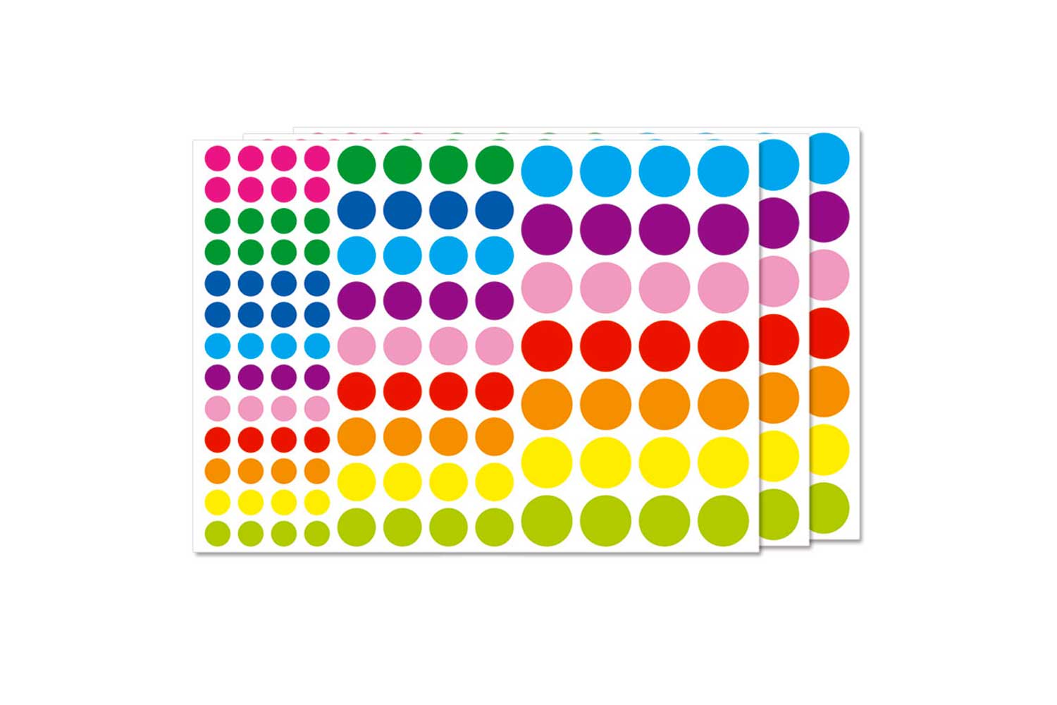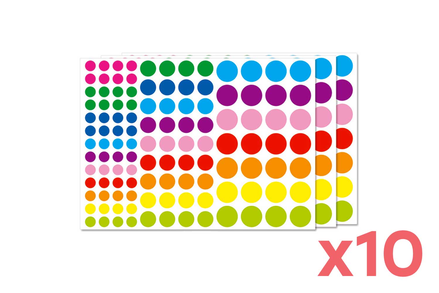 10 DOIGTS round-shaped stickers. Sheets of 116 stickers, available in 10 vibrant colors.