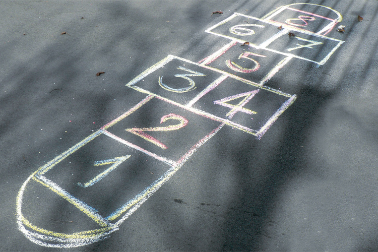 - Colors in the box of 5 chalks: yellow, red, green, blue, and white.