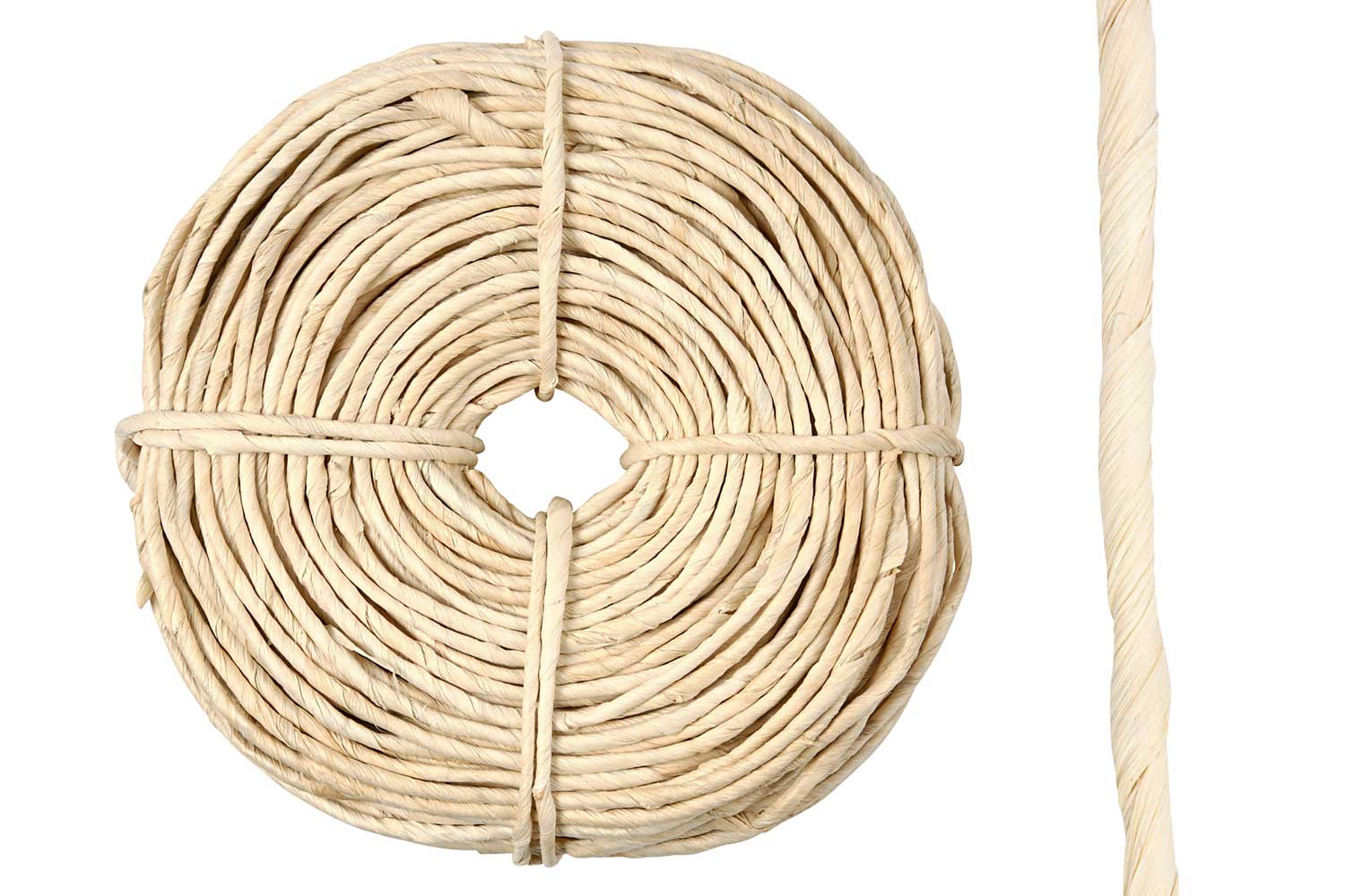 High-quality twisted corn cord. Handcrafted spool, variations may occur, particularly in length. Each spool weighs 500 g, which is approximately 2.5 m long. Braid baskets, containers, or vases with this cord for all weaving activities.