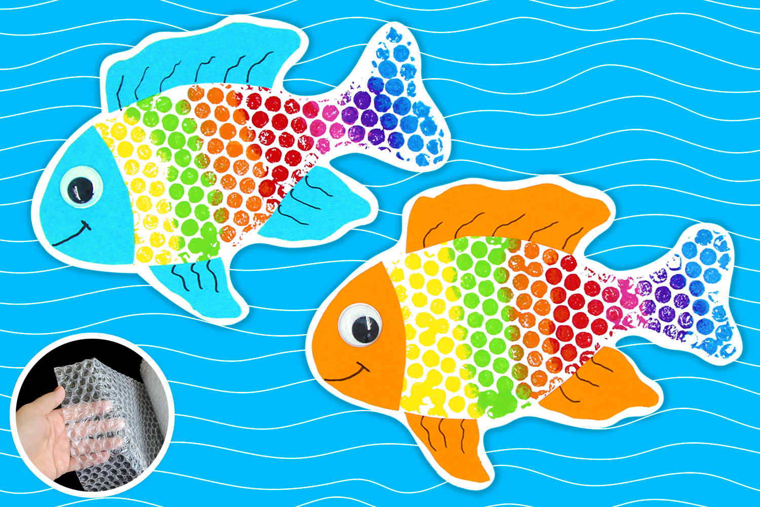 After printing our fish template here, place bubble wrap on top and trace the contours of the fish's body with a black permanent marker.