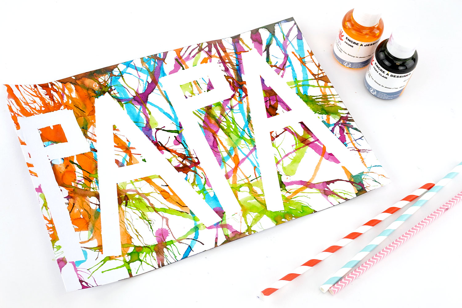 Once the masking tape is removed, the word "dad" appears in white for a surprise effect guaranteed !