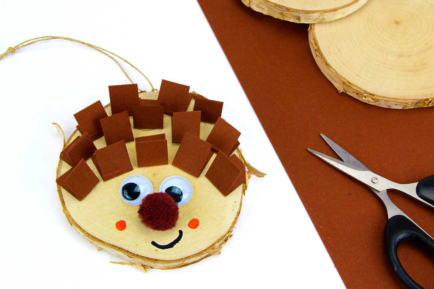 In this craft, we will decorate a log with paper, a pompom, eyes, and markers to create a funny little hedgehog!