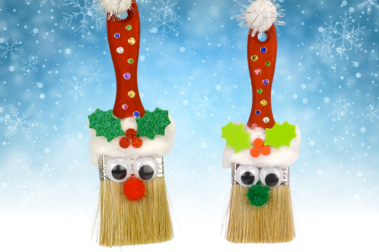 In this fun Christmas DIY activity, children will enjoy transforming a large paintbrush into an adorable hanging Santa Claus for the tree.