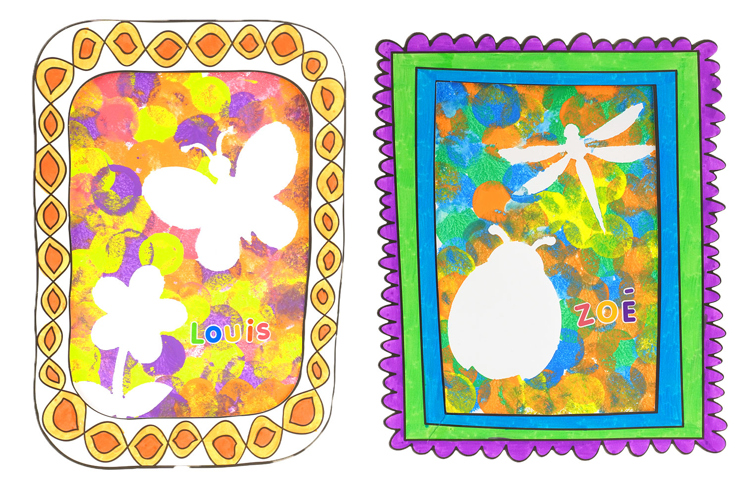 Pendant que la peinture sèche, colorier le cadre avec les feutres de votre choix.
