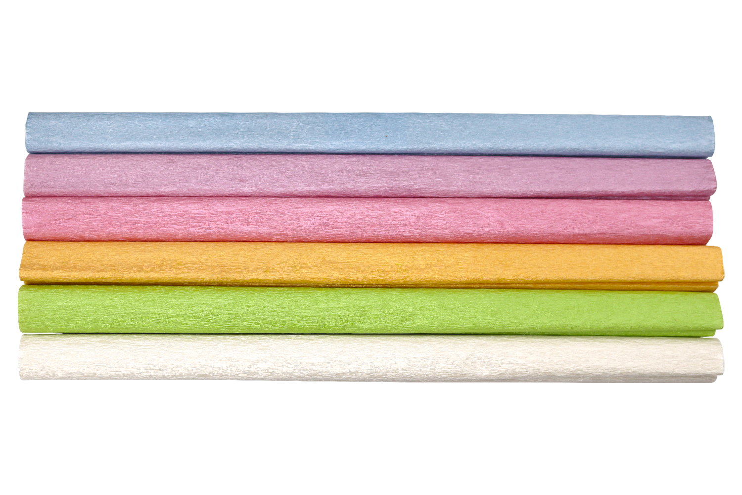 A beautiful assortment of crepe paper sheets in pastel tones with an iridescent finish, perfect for your creative projects.