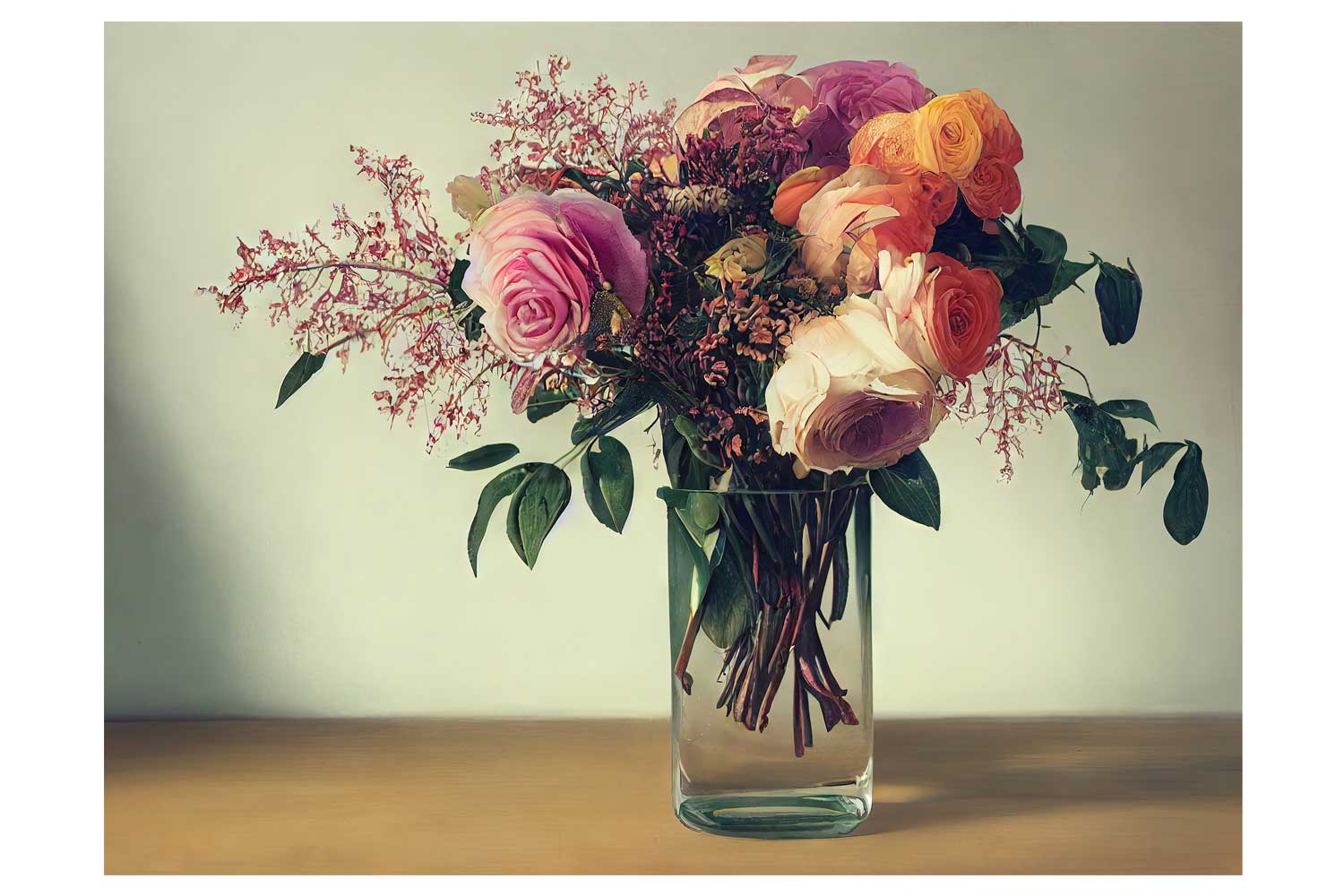 - 1 printed adhesive canvas, rose bouquet pattern (30 x 40 cm)