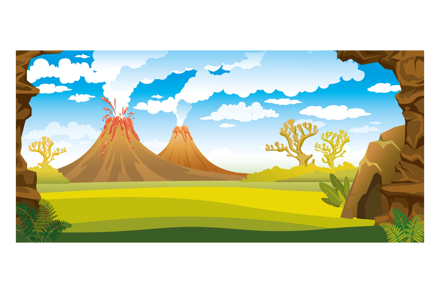 Very beautiful dinosaur stickers accompanied by a Jurassic-themed mural. An activity that children will enjoy, allowing them to personalize a large mural measuring 63 x 30 cm, featuring a volcanic eruption and a colorful landscape, thanks to these magnificent dinosaur stickers.