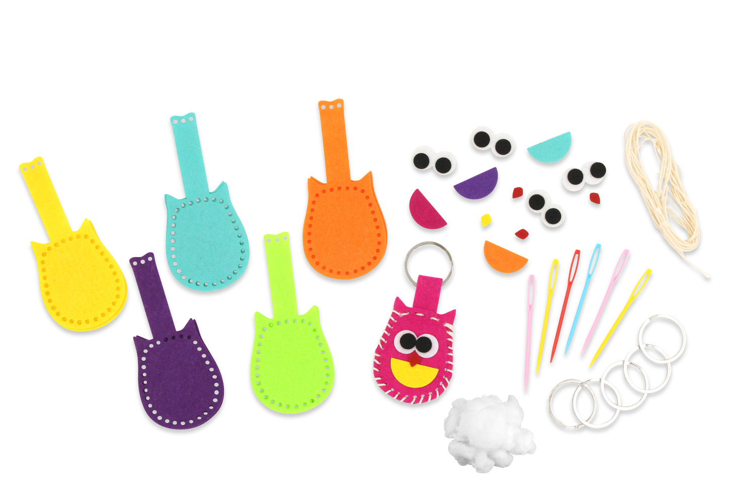 - Pre-cut and perforated felt shapes + adhesive felt accessories