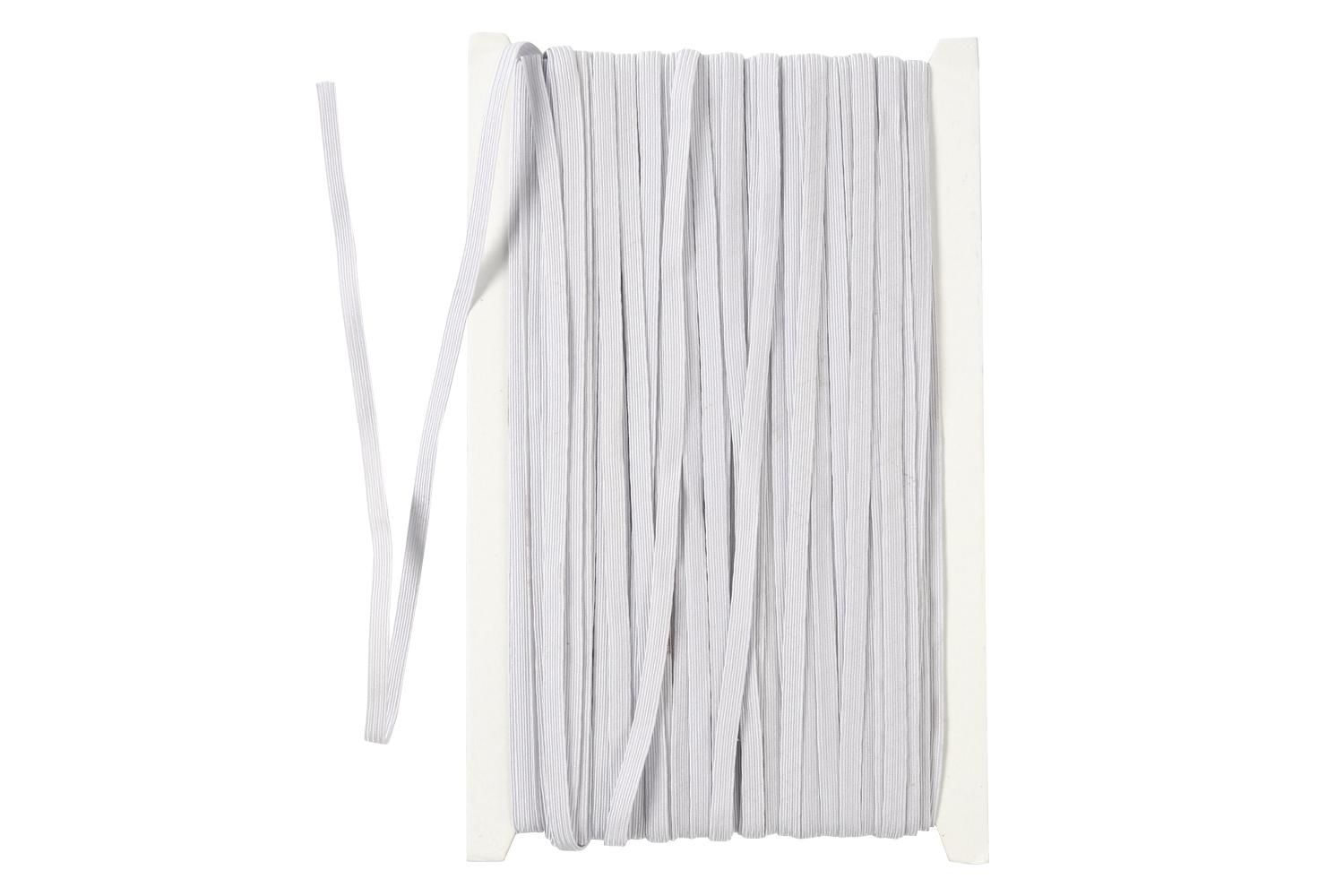 Standard flat elastic thread on a card for making costumes, protective masks, or other creative haberdashery activities. This flat thread, with a width of 6 mm, is very practical for designing creative projects. It is pleasant to work with and allows for the creation of large works thanks to its XXL length of 50 m!