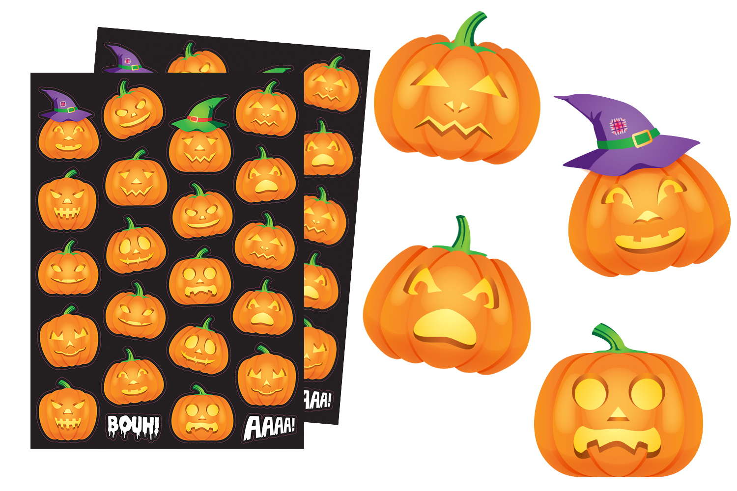 Pumpkin stickers to add a spooky touch to your Halloween decorations.