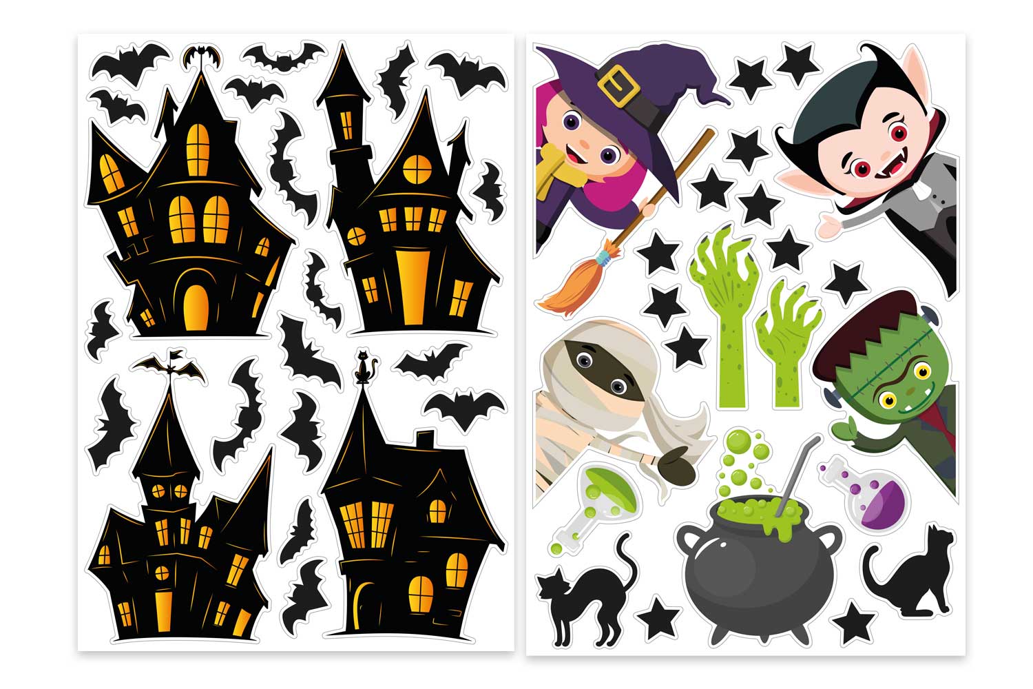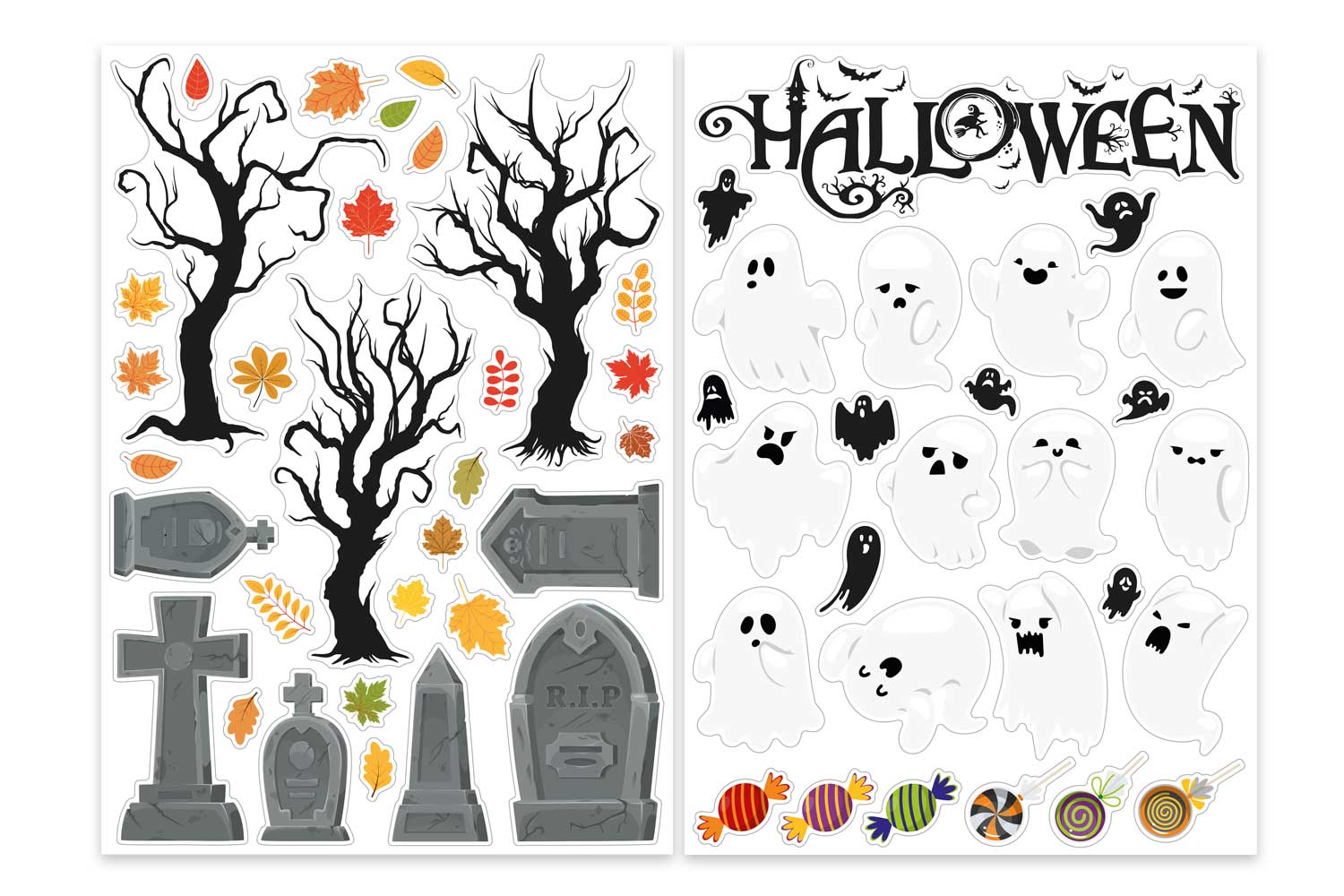 The set includes a variety of designs such as smiling pumpkins, monsters that are more fun than frightening, dancing skeletons, playful ghosts, and decorative elements like trees, tombstones, and haunted castles. These stickers are perfect for creating a festive atmosphere for Halloween without worrying about sticky residue on your windows, as they are repositionable and won’t damage the surface.