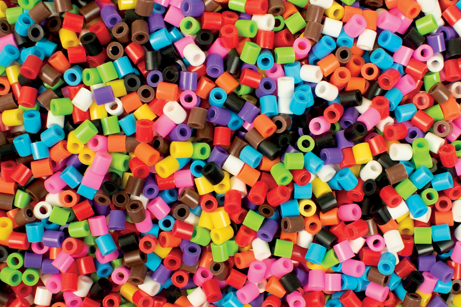 Multicolored opaque tubular beads for ironing. This essential creative DIY activity allows you to create designs by positioning each bead on a pegboard. Once the design is complete, you can use an iron to fuse the beads together to secure your creation and keep it for a long time!