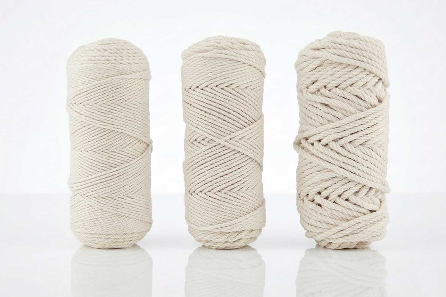 - Yarn Ø 4 mm: 100% cotton, natural color, twisted yarn (double twisted)= for large macramé works