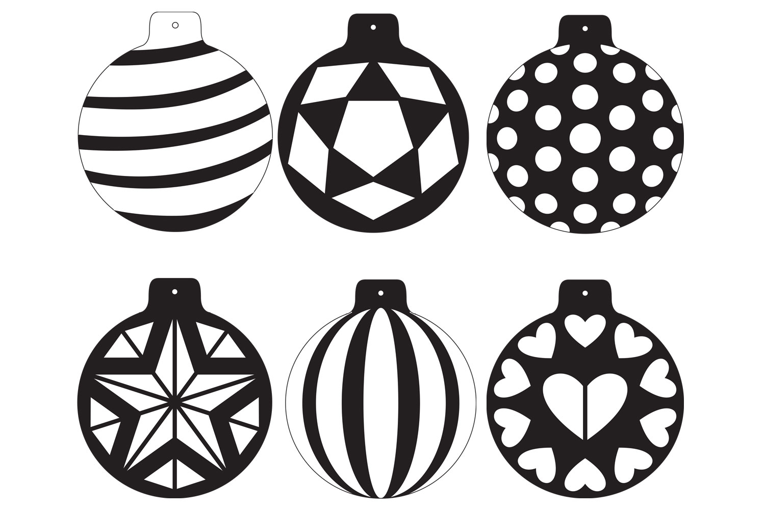 - 6 sturdy card baubles Ø 10 cm