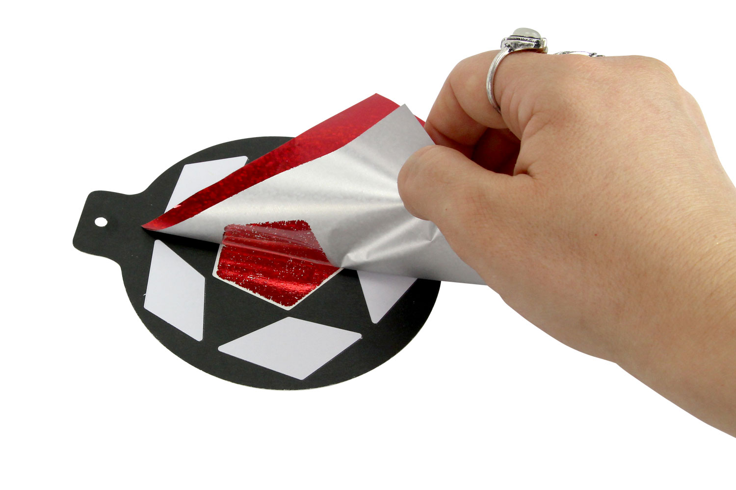Apply the metallic paper on the sticky areas and tap with your finger