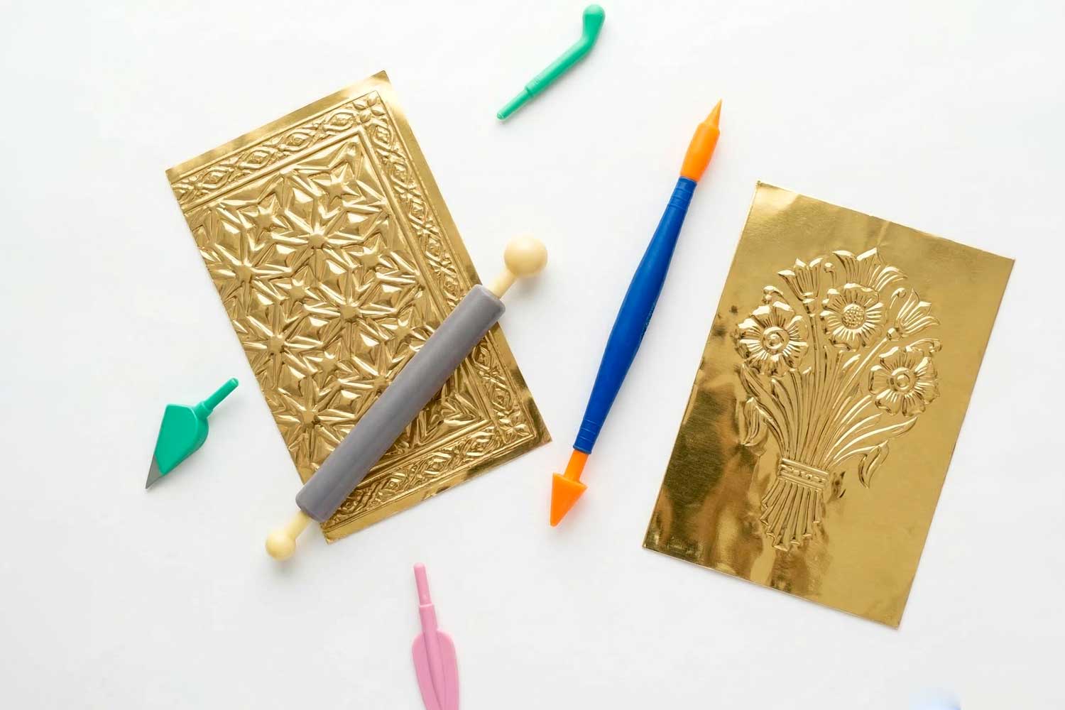 Take your modeling skills to the next level! This clever and versatile tool set is the essential accessory for shaping, smoothing, texturing, and adding incredible details to all your creations in modeling clay or dough. With its 8 interchangeable tips and 2 ergonomic handles, one of which transforms into a mini-roller, you'll always have the perfect tool at hand.