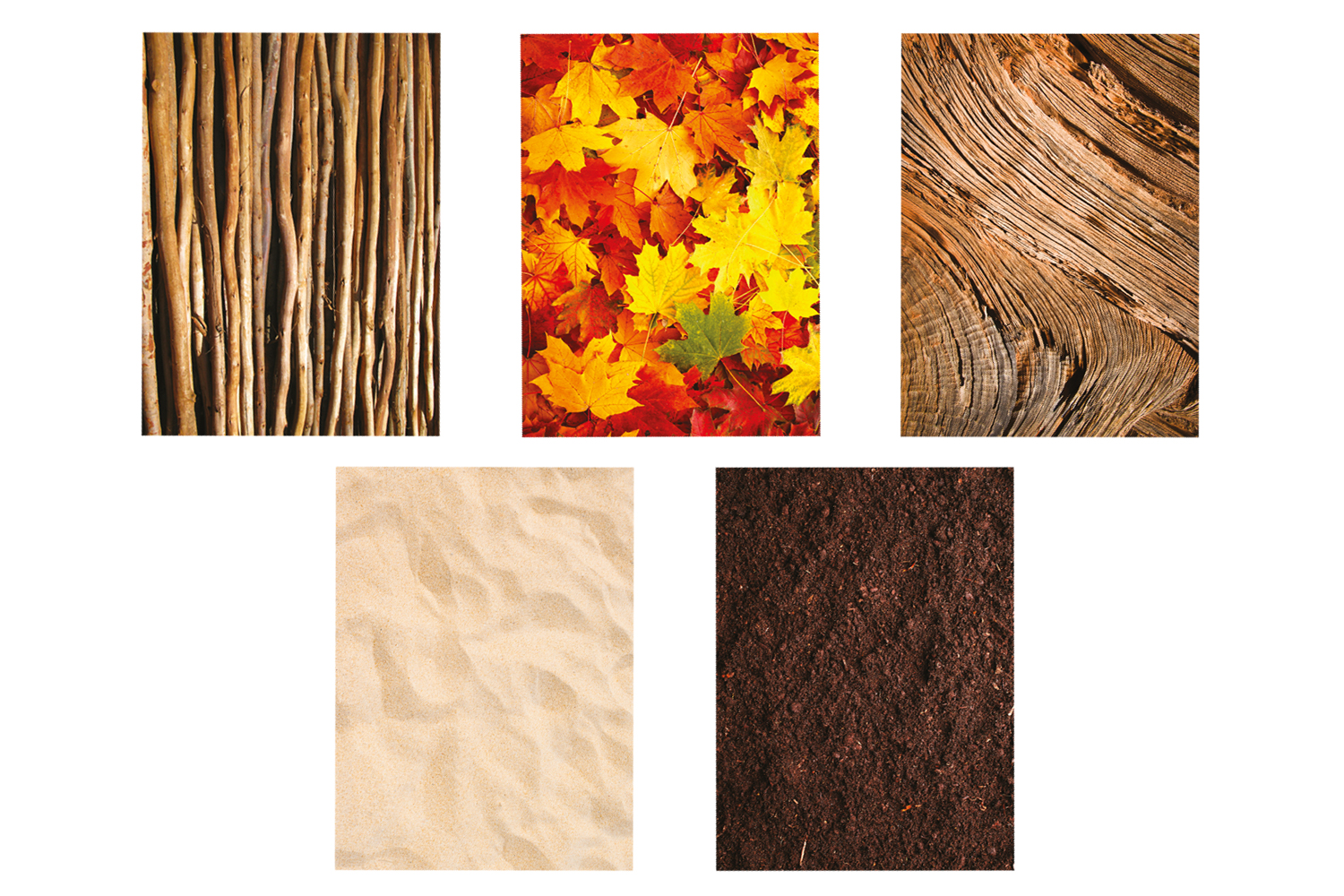 Picture paper sheets themed around Nature. Ideal for cutting/gluing activities and other artistic compositions. Especially suited for children's learning: to help them guess the elements of nature represented. Printed on one side / white on the other.