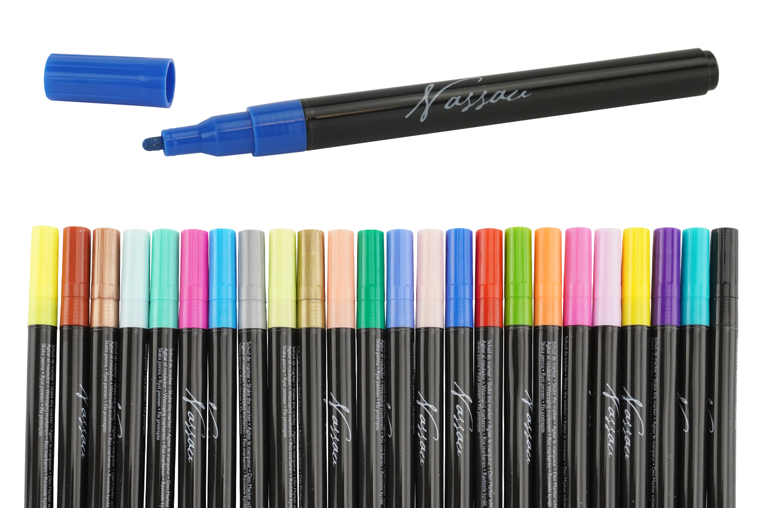 Available in sets of 6, 12, or 24 assorted colors, these markers provide a rich and varied palette to personalize your everyday items or create unique decorations. Easy to use, they allow for precise drawing and excellent adhesion on smooth surfaces.
