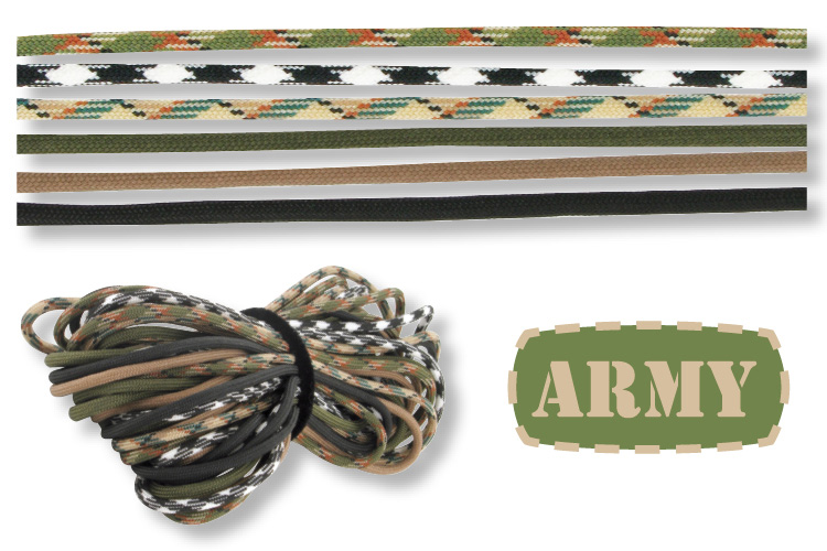 Each Paracord length (2.6 m - Ø 4 mm) can be used to create 1 bracelet or 2 "little man" keychains.