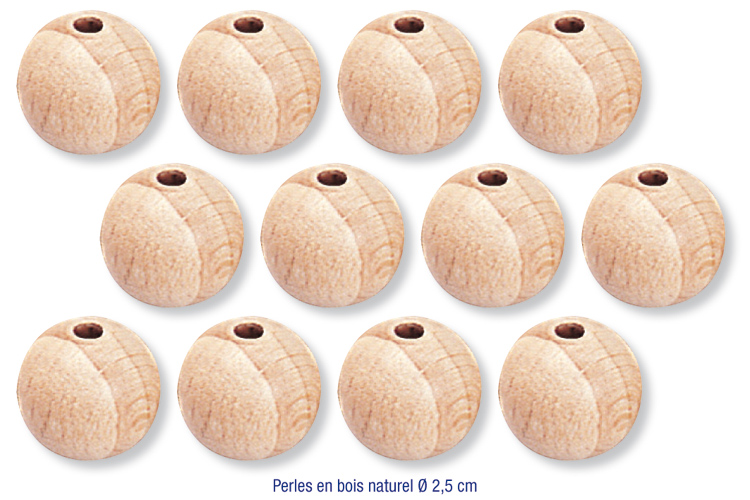 - 12 natural wood beads Ø 2.5 cm