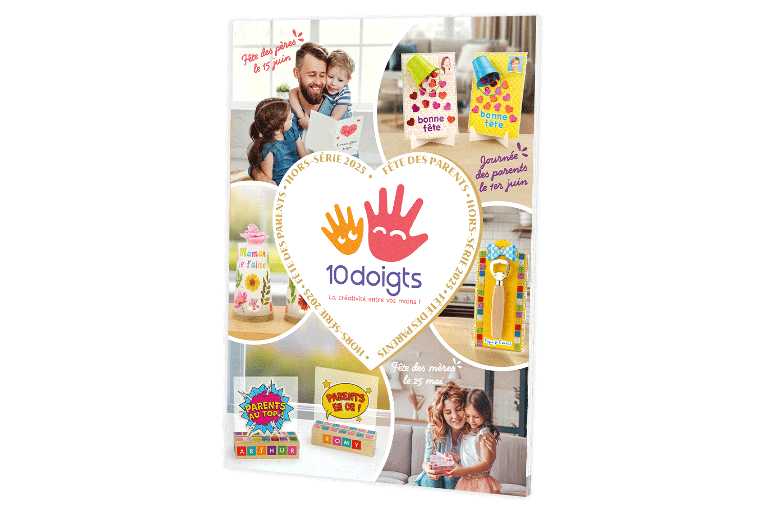 In this booklet, you will find many creative ideas suitable for all ages and levels of artistic skills. Over 54 pages of tutorials to discover that will allow your little artists to create original gifts for Mother's Day and Father's Day ! In addition to the activities explained in detail with photos, you will find in this catalog hundreds of affordable gift ideas to pamper parents and thank the professionals who wonderfully care for our children throughout the year, at school, at home, or elsewhere.