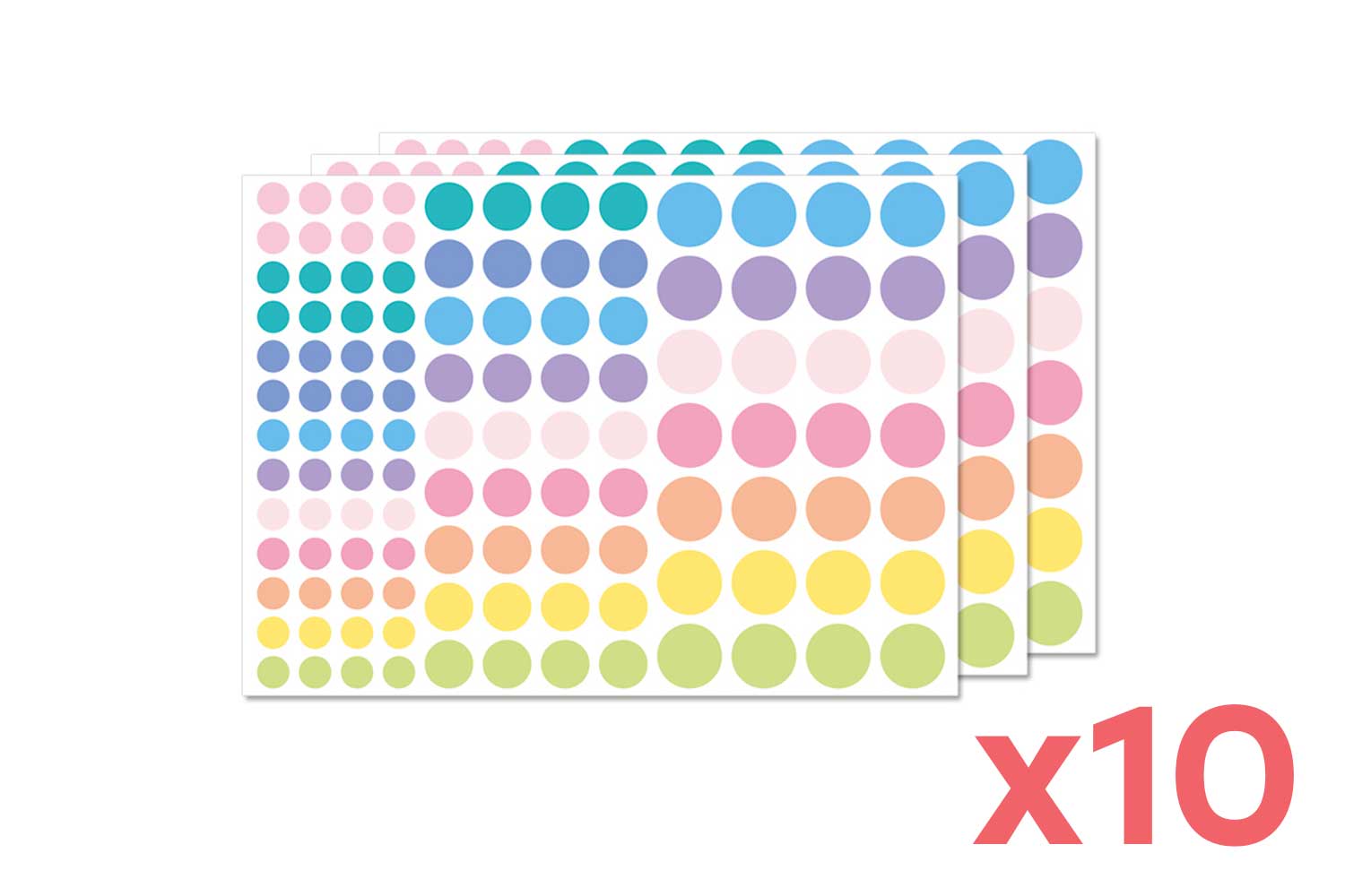 10 DOIGTS round stickers. Sheets of 116 stickers, available in 10 pastel colors.