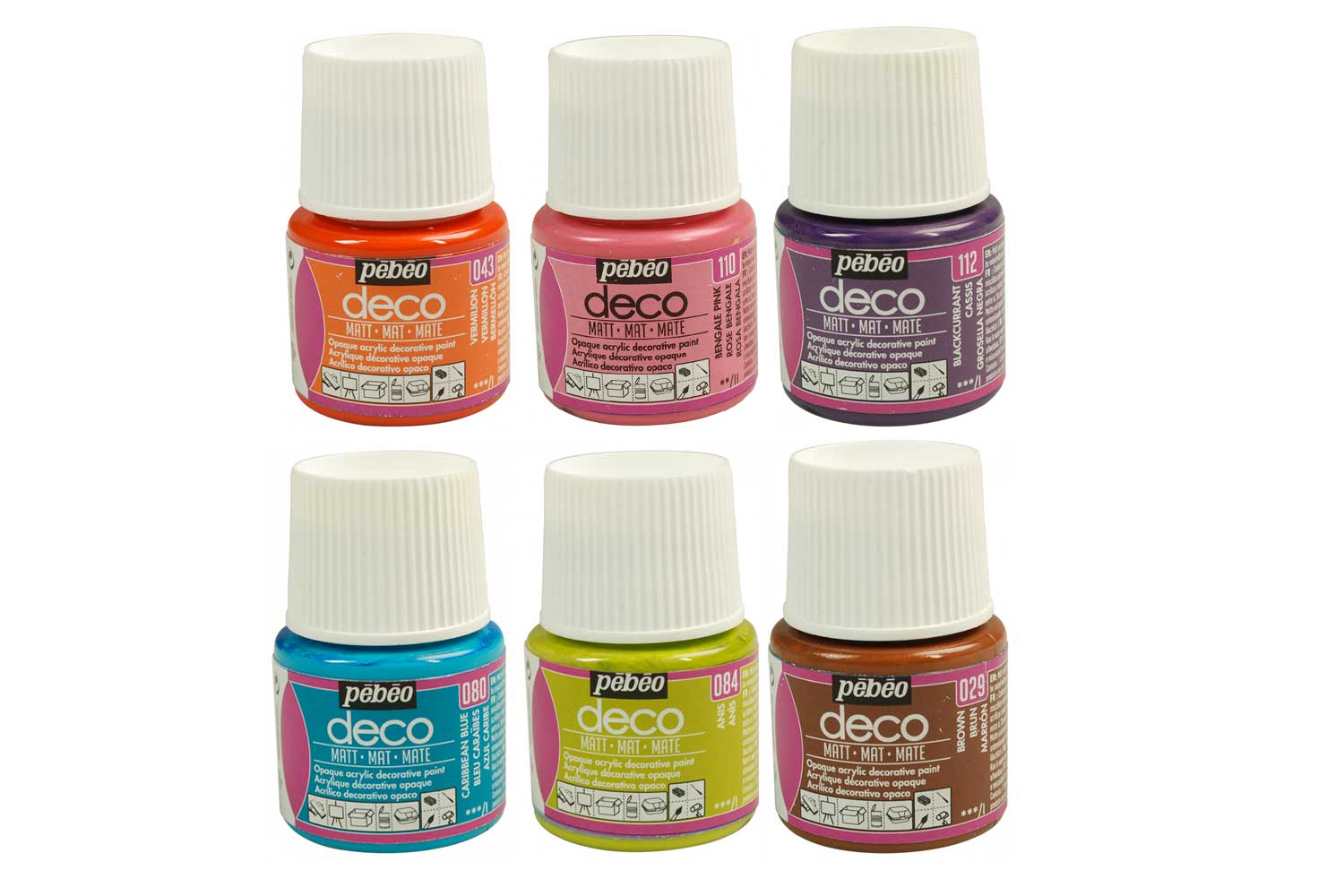 Vibrant and trendy colors! The Pébéo palette offers vibrant and modern shades, perfect for bringing your creations to life. Each small 45 ml pot has a convenient wide opening: use your brush directly or take the desired amount with a pipette.