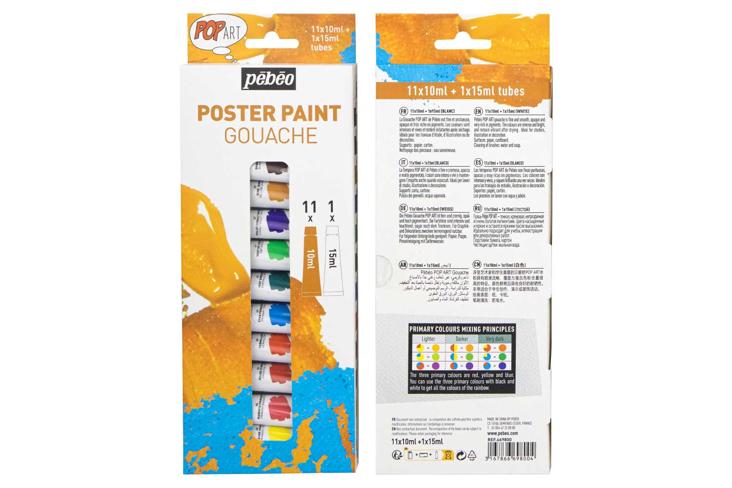 - This set contains 12 tubes of fine gouache: 11 tubes of 10 ml each + 1 tube of 15 ml for white.