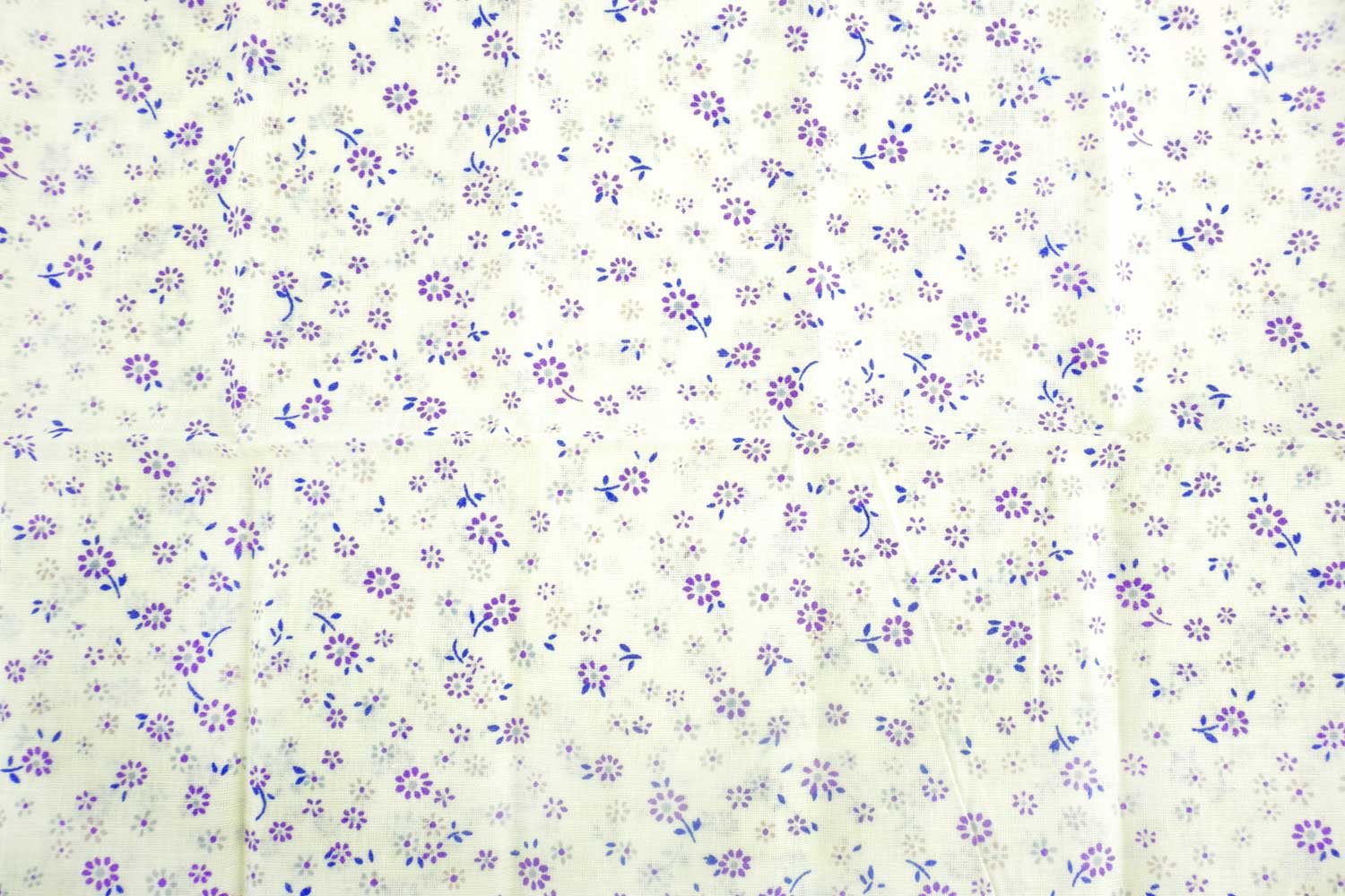Large cotton fabric coupon for all types of sewing projects. Purple floral liberty patterns on a white/ecru background, ideal for creating beautiful sewing pieces, patchworks, and embroidery.