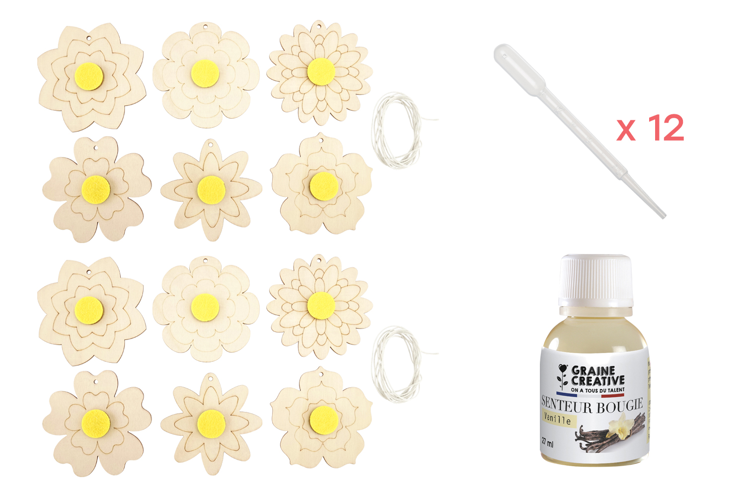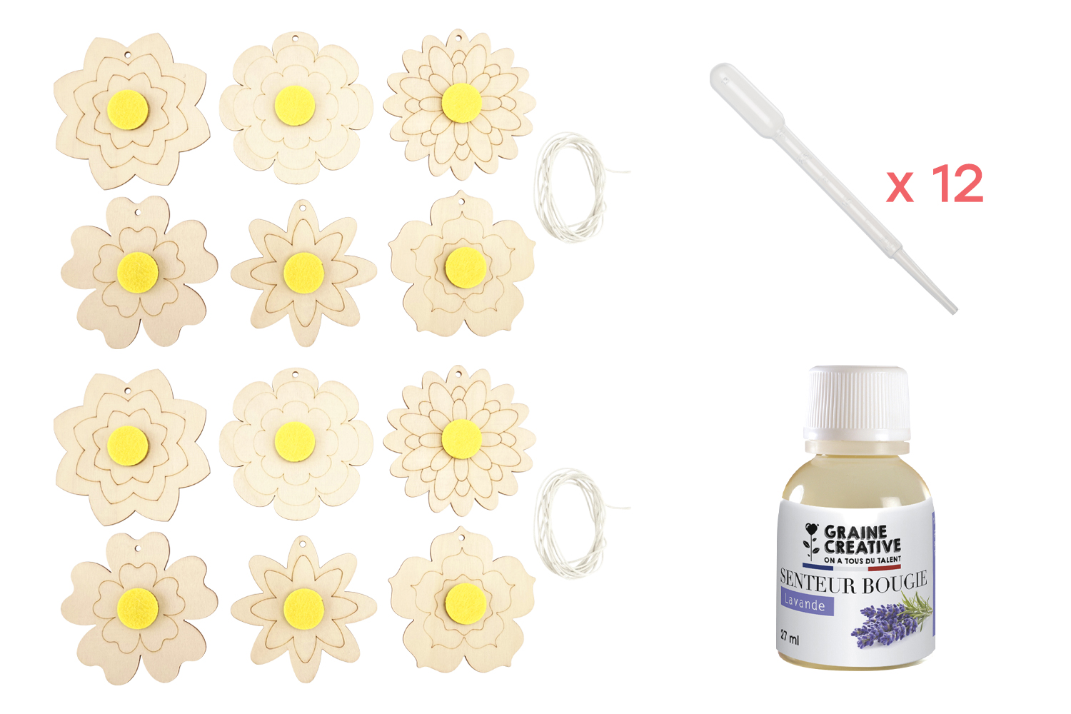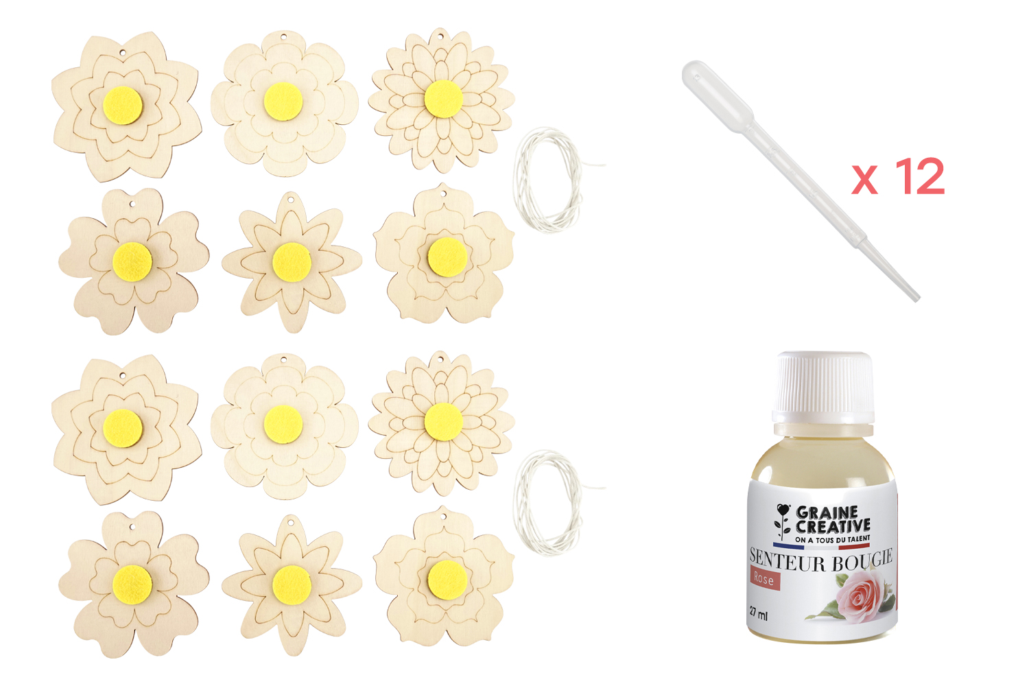 Add a creative and fragrant touch to your home with these engraved wooden flowers for decorating. Easy to paint with markers or paint, these flowers feature a thick felt center where you can place a few drops of your favorite fragrance. Hang them in a closet, dressing room, or even your car for a delicate and lasting scent.