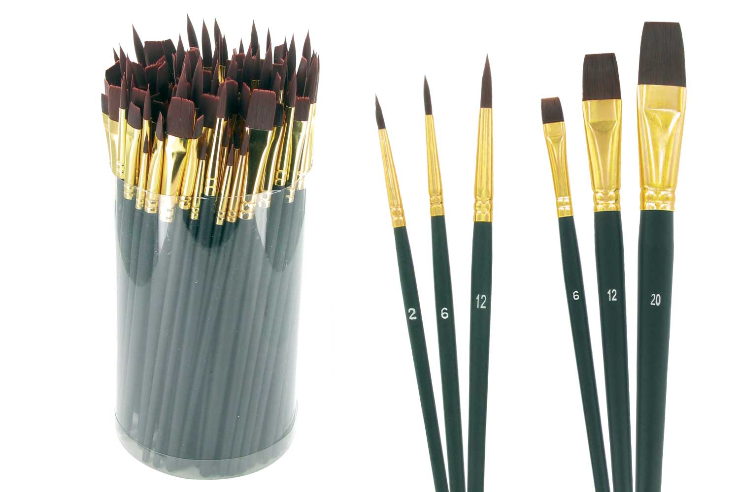Tube of 72 synthetic hair brushes