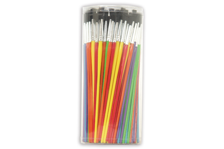Tube of 144 round synthetic hair brushes with multicolored handles