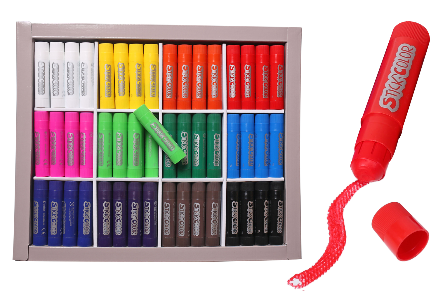 We have combined the benefits of paint without the drawbacks in a retractable stick (using the same principle as a glue stick). The solid consistency of the gouache stick has been specially designed for children and for better durability.