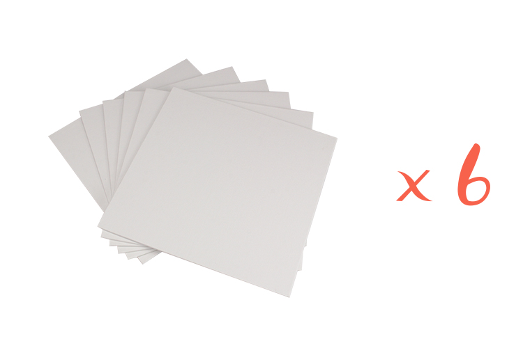 Square canvases made of 100% white cotton, laminated on thick cardboard and coated with layers of primer for immediate use without prior preparation. Its rigid surface is pleasant for children to use.