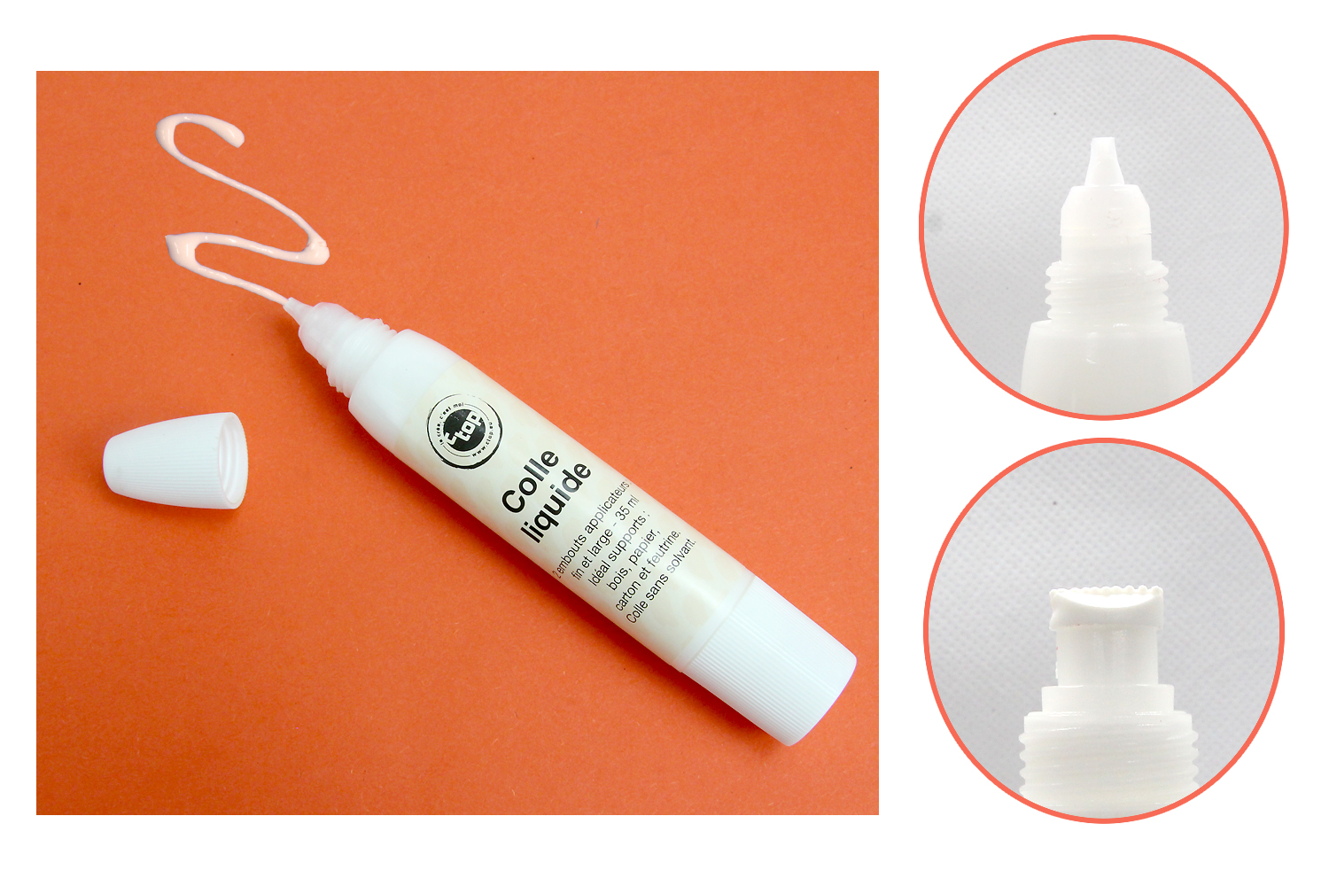 Colle blanche hyper pratique avec ses 2 embouts.