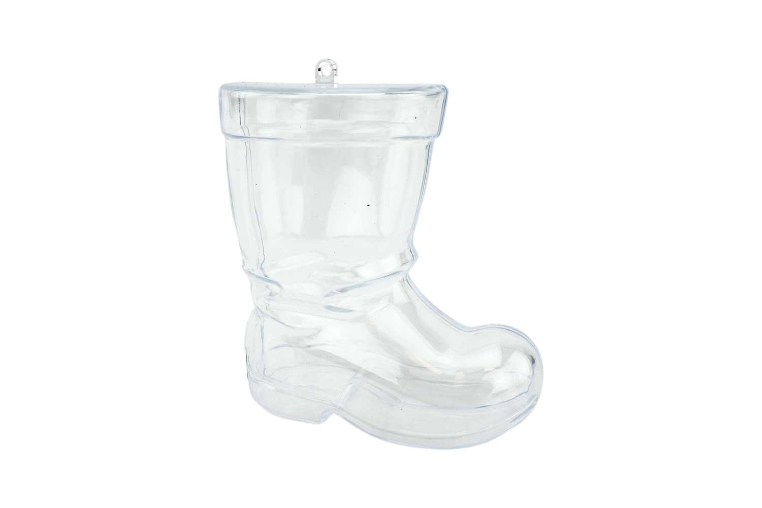 Transparent plastic suspensions in the shape of boots. Open the boot to insert surprises, chocolates, colored papers inside. Then hang these lovely decorations on the tree.