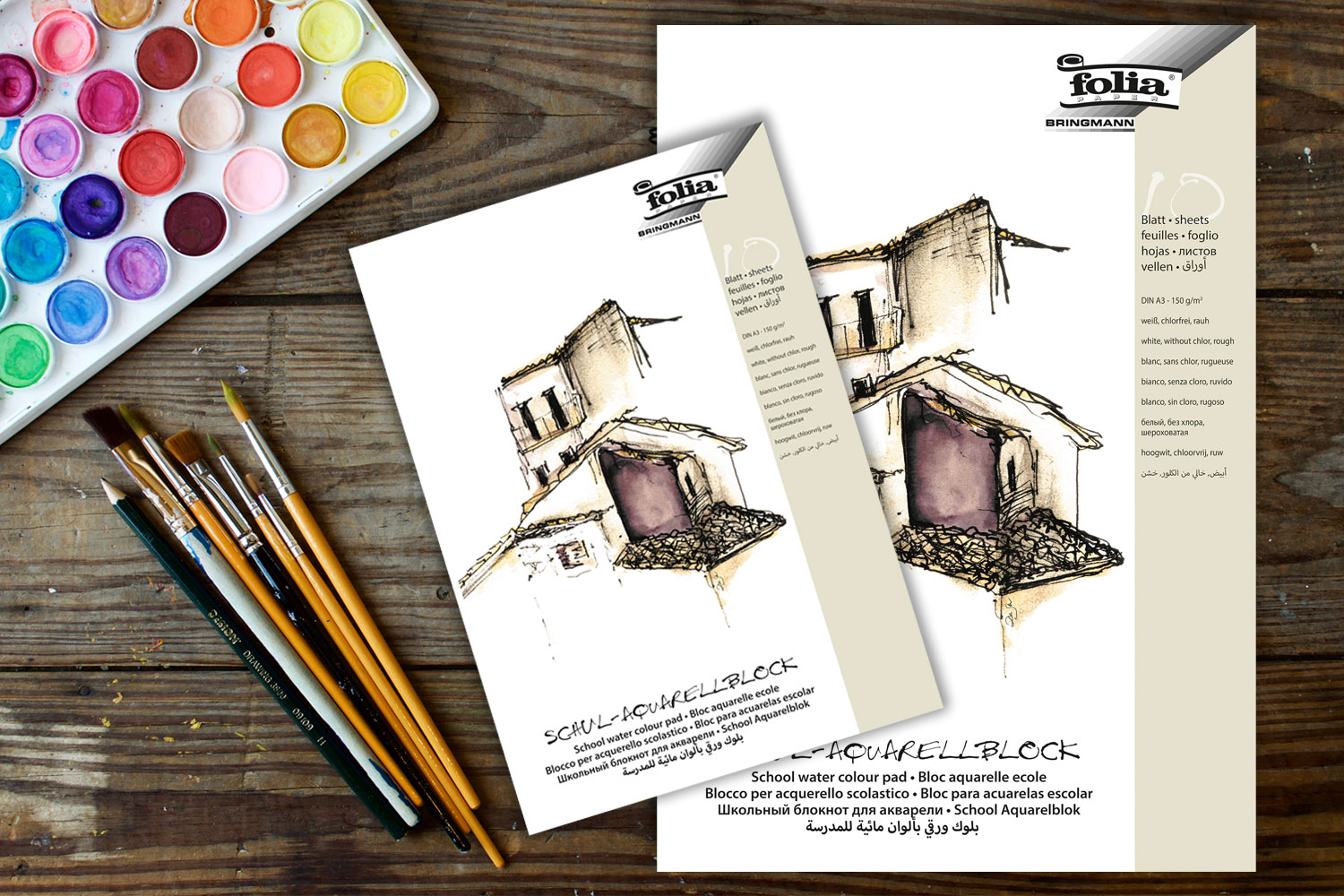 White fine grain watercolor paper, 150g/m² for water-based painting techniques such as watercolors, inks, gouaches for school, and watercolor pencils. Thanks to its three glued sides, this pad is ready to use. You can apply water to the paper, create your painting, and the paper will remain taut throughout the process. Once the paint is completely dry, gently detach the sheet from the rest of the pad using a craft knife.