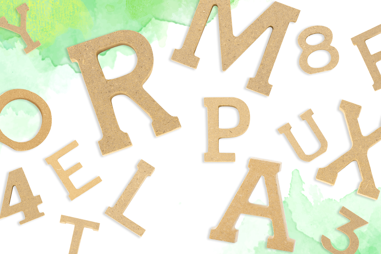 Medium wooden letters and numbers that can stand on their own or be glued to a wall, door, or cabinet... (with mounting paste or glue).