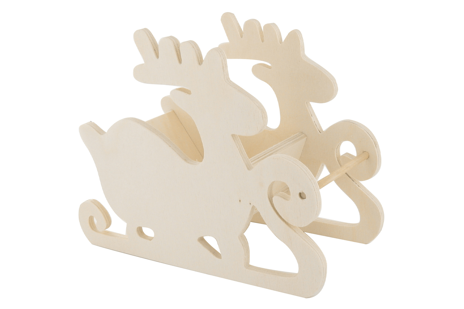 Natural wooden reindeer sled to decorate with acrylic paint, paint markers, adhesive varnish paper, glitter...