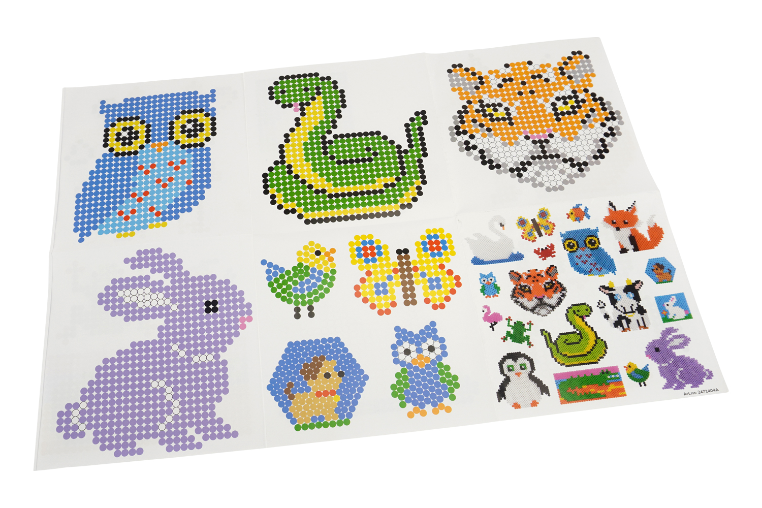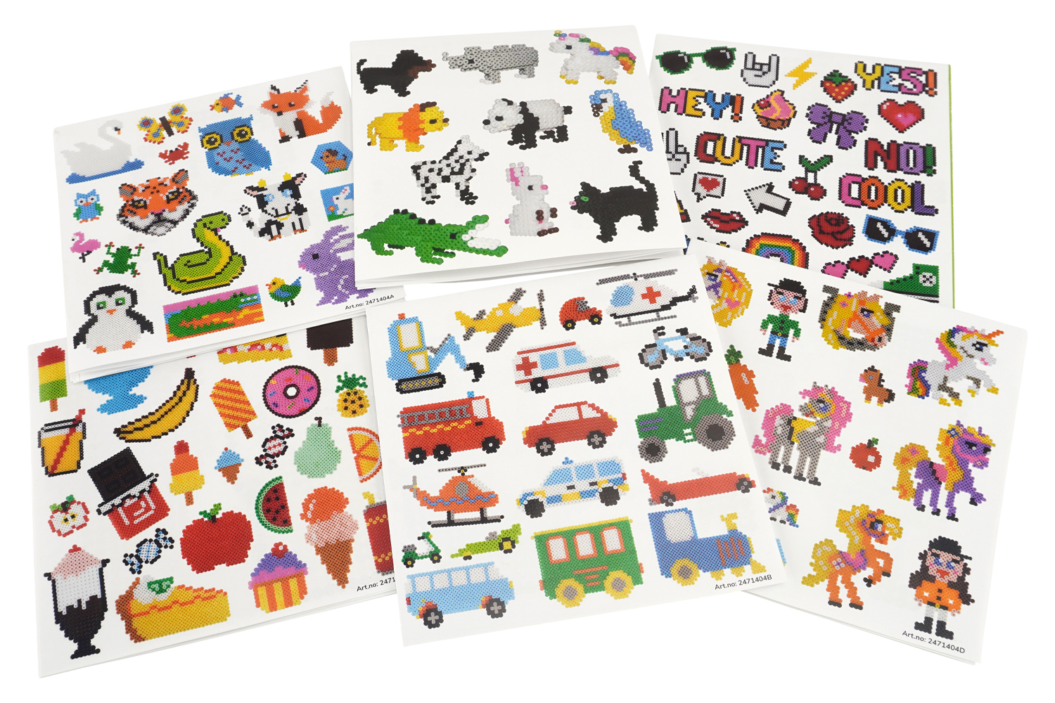 ¿Tienes las cuentas, tienes las placas, pero te falta la inspiración? ¡No busques más! Este mega pack contiene 110 modelos variados para guiar tu creatividad y ayudarte a realizar creaciones increíbles. Solo necesitas deslizar la ficha de tu elección bajo una placa transparente y seguir los colores para dar vida a animales, vehículos, unicornios y mucho más. ¡Es fácil, divertido y siempre el resultado es exitoso!