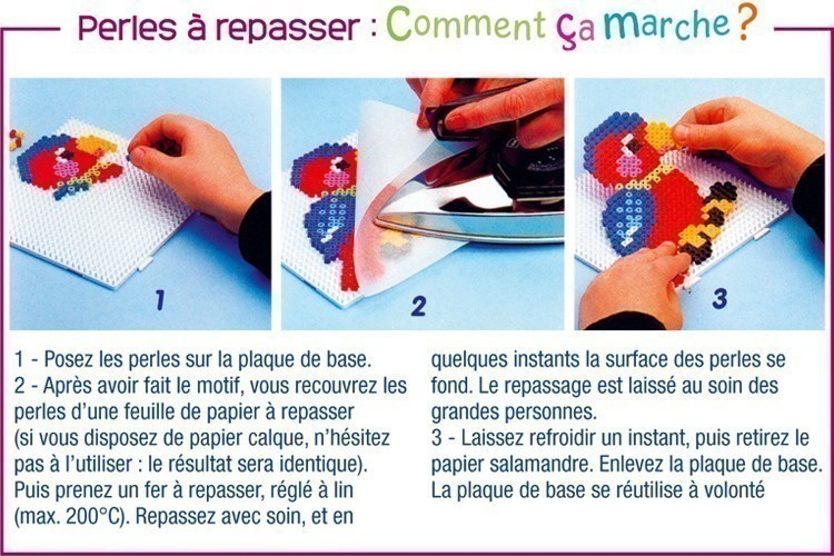 Con los abalorios para planchar, los niños aprenden a reproducir un dibujo, a reconocer los colores, a contar los abalorios y desarrollan su creatividad hasta inventar ellos mismos su propio motivo ! Actividad para mayores de 5 años.