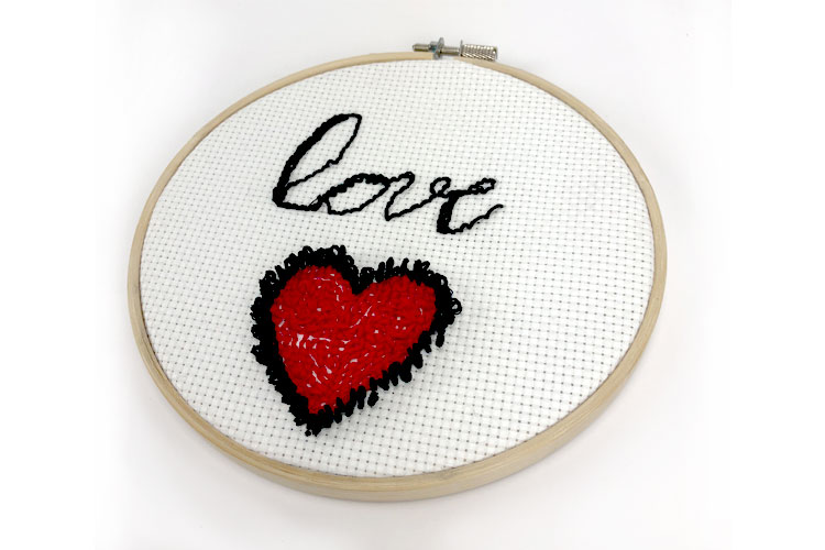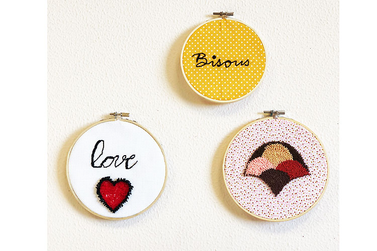 Algunos consejos : Comienza siempre por los contornos, luego rellena las formas. Asegúrate de que el hilo esté siempre bien suelto (como cuando se usa un tricotín mecánico). Para ello, piensa en desenrollar bien el hilo de las madejas o del ovillo a medida que avanzas para que no haya ninguna tensión. Cuando la obra esté terminada, puedes fijarla por detrás con un tejido termoadhesivo.