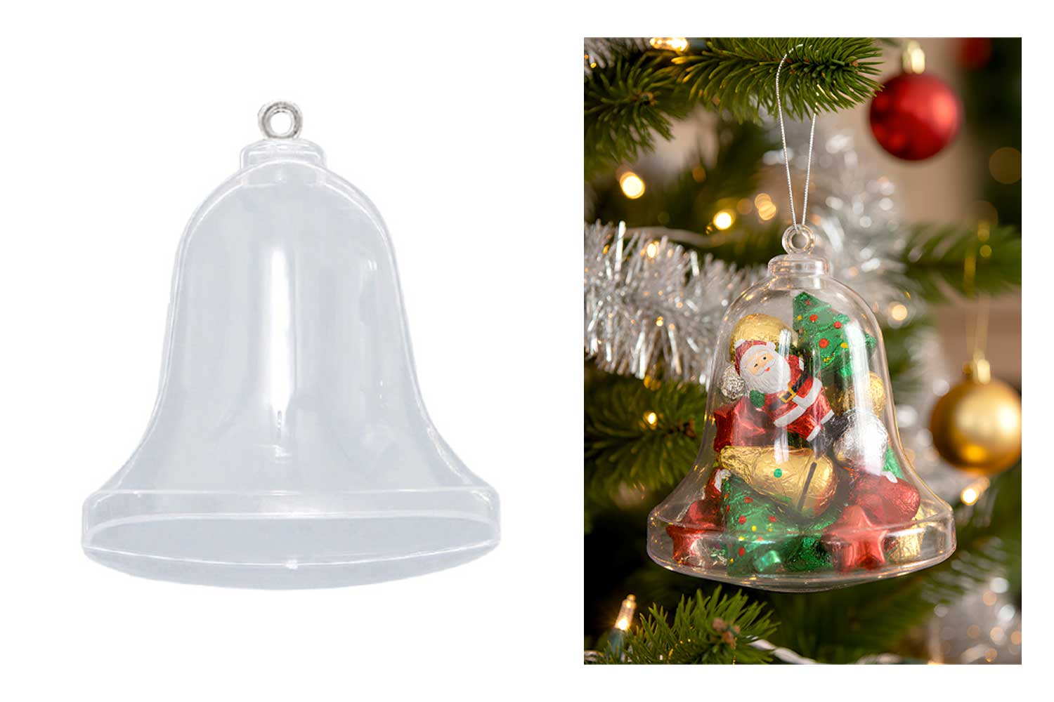Campana de plástico transparente para decorar en ocasión de las fiestas de Pascua o para Navidad. Esta campana permite realizar una decoración de interior original.