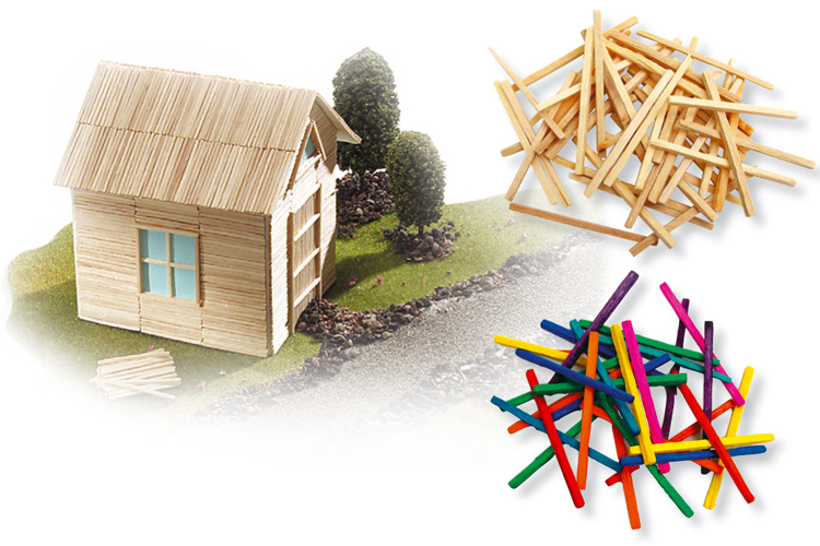Estas cerillas de madera, naturales o coloreadas, serán muy apreciadas por los pequeños manitas en ciernes que podrán divertirse pegándolas para crear proyectos en 3D.