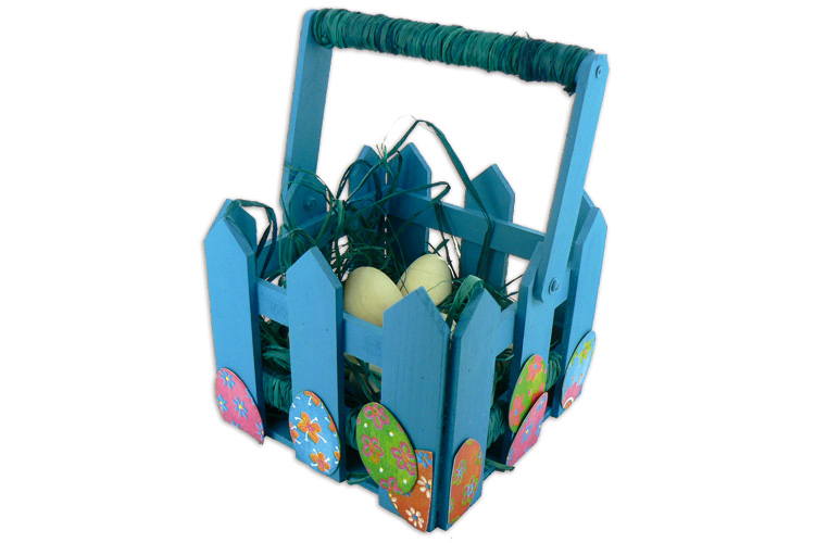 Para llenar con hierba a tirabuzón, paja o rafia y depositar sus huevos, chocolates, caramelos...