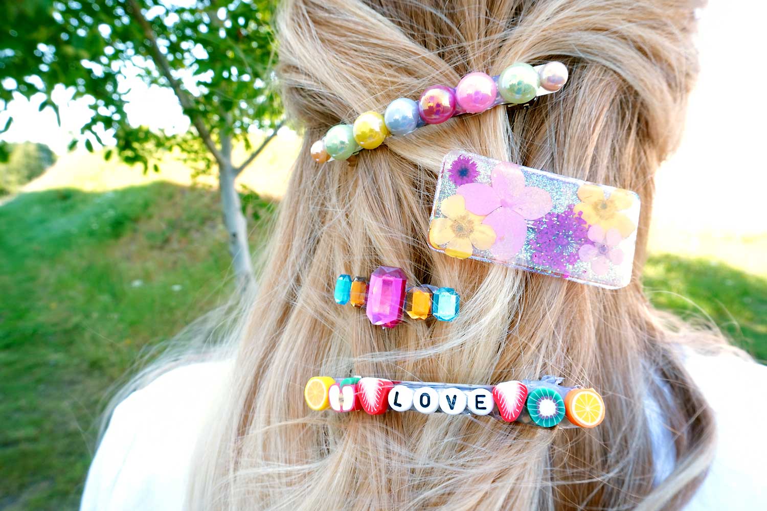 Grandes clip de metal plateado para decorar el cabello. A personalizar con cintas, perlas, strass, cabochones…